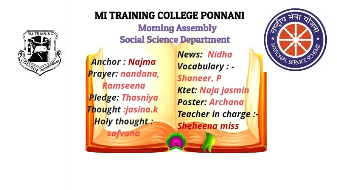 The Morning Assembly was conducted by the Social Science Department at M.I. Training College, Ponnani in a disciplined and meaningful manner.